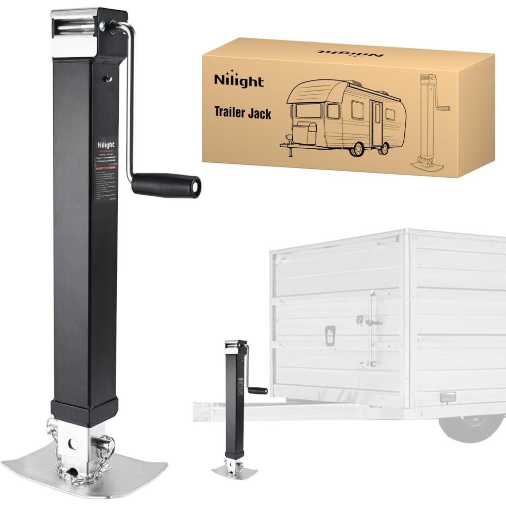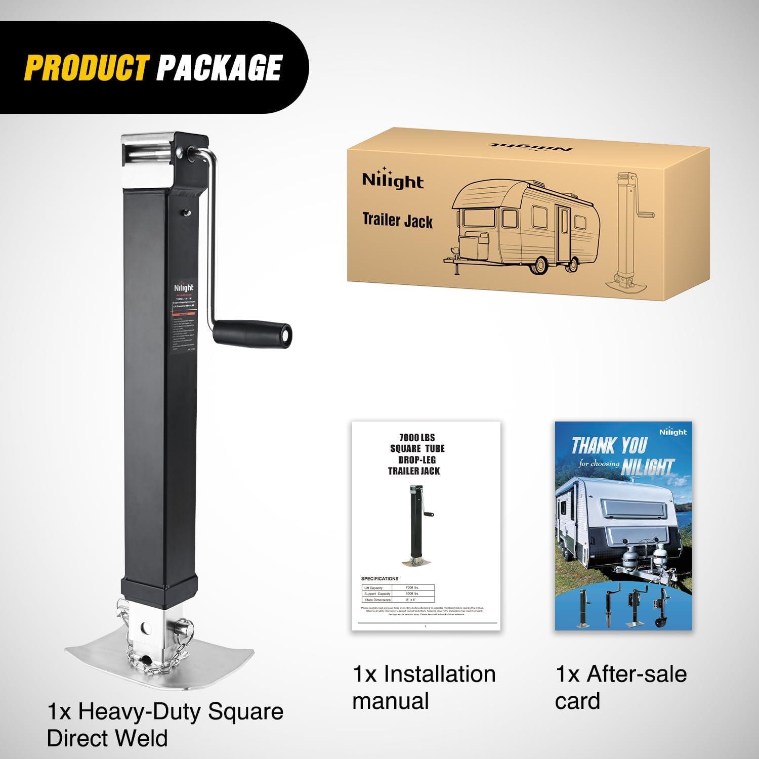 HEAVY-DUTY TRAILER JACK: Engineered for vehicles workloads, nilight square welded trailer jack offers 8,000 lbs of support capacity, 7,000 lbs of lifting capacity, making it ideal for lifting RV trailer, horse trailer, utility trailer, yacht trailer and heavy-duty equipment. Compatible with a variety of vehicles, meeting professional and home needs