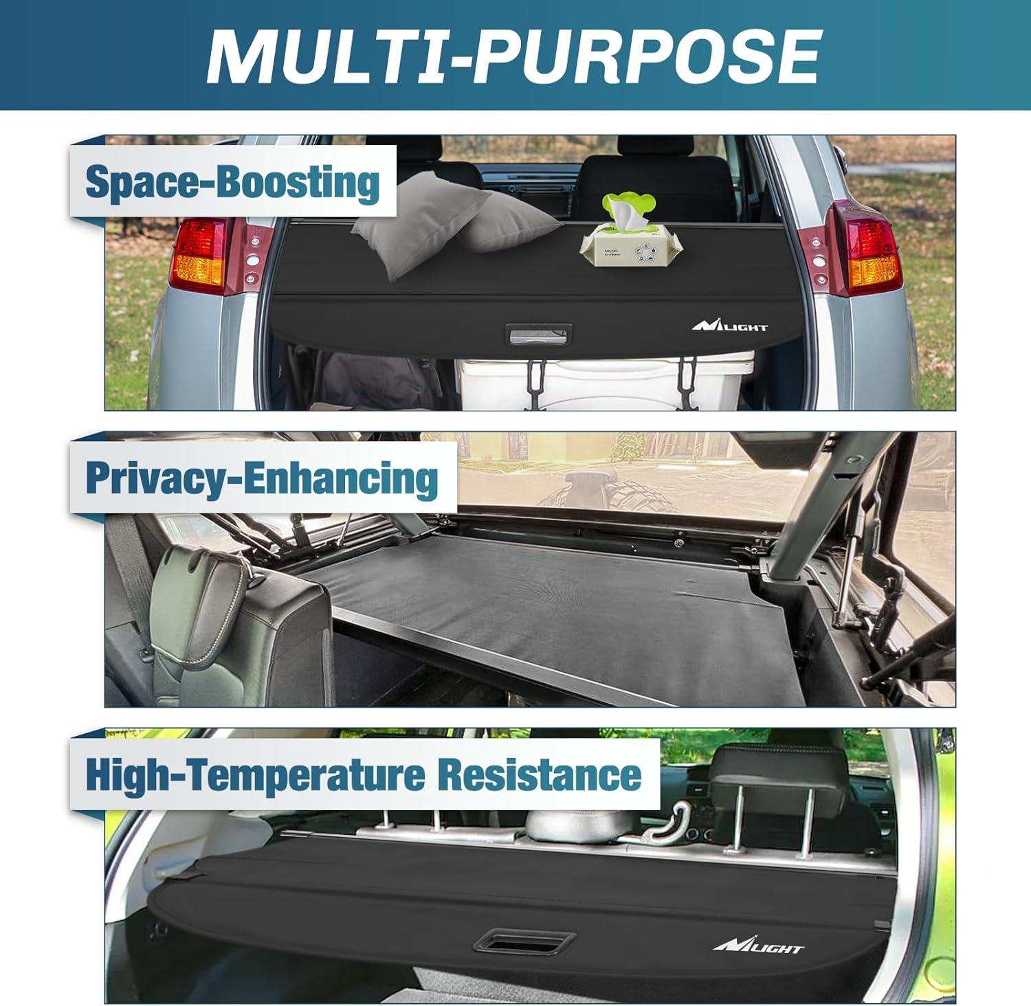 Secure Your Cargo: Nilight rear retractable cargo cover shields your valuables from unwanted attention and deters theft, providing privacy for your cargo. Adding an extra layer of protection to your cargo area