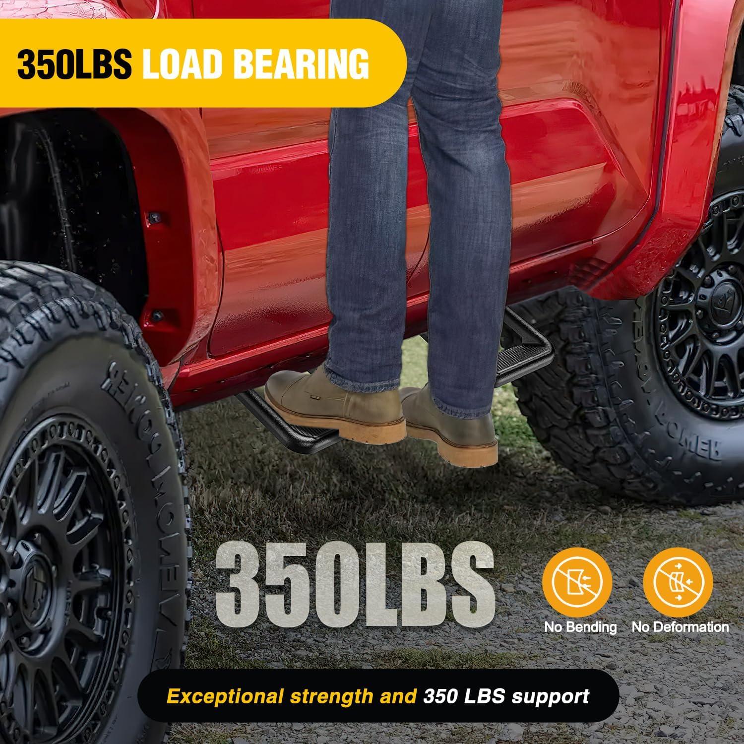【HIGH-STRENGTH SUPPORT】- Truck side steps crafted from cast aluminum offer exceptional durability, ensuring long-lasting use with no rust or degradation. With a robust weight capacity of 350 lbs, they guarantee reliable support, enabling safe and secure entry and exit from your vehicle.