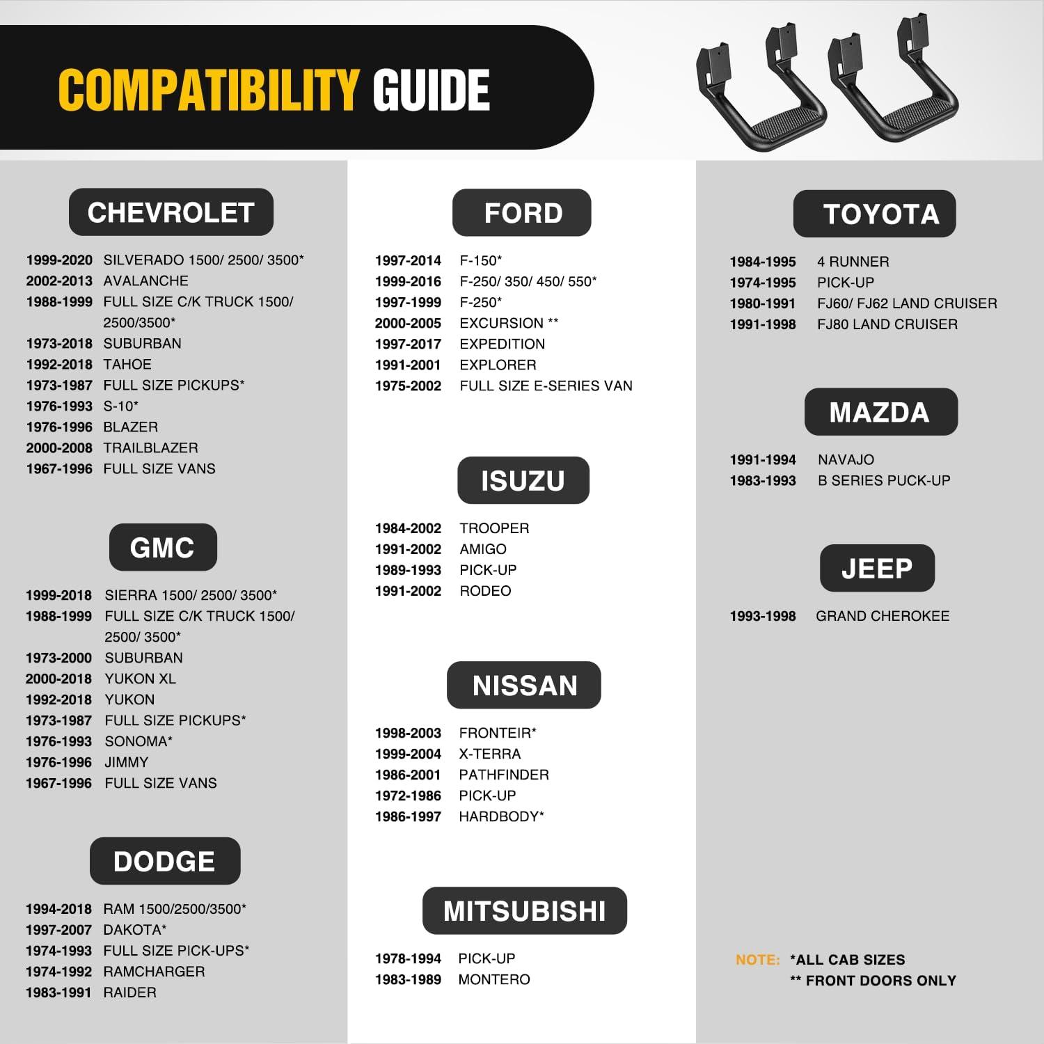 【PACKAGE INCLUDED】- The package includes 4Pcs Side Steps, Necessary Mounting Hardwares, and Installation Instructions. If you have any questions or problems, please contact us.