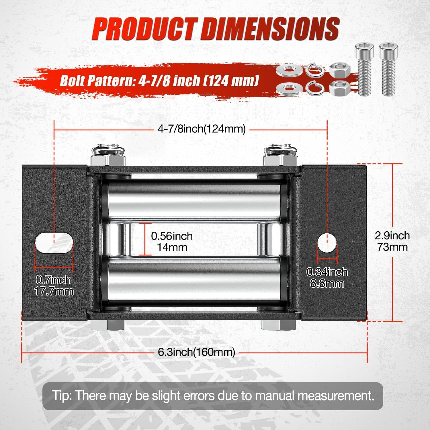 WIDELY COMPATIBLE: This Roller Fairlead is compatible with 10 in / 254 mm Center bolt pattern. Measuring 11.7 in (L) X 24.7 in (W) , Space Between Roller: 0.79 in. The towing winch cable guide is compatible with most UTV/ATV winches with capacities from 8000 to 12000 lbs