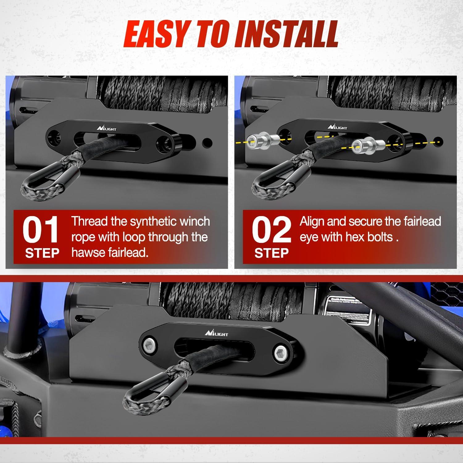 QUALITY MATERIAL FOR DURABILITY: The winch fairlead made from heavy-duty iron brackets, powder coat finish, zinc coat rollers, the bolts have a dacromet finish. Nilight winch is UV and corrosion resistant. Can be used for long periods of time on off-road adventures