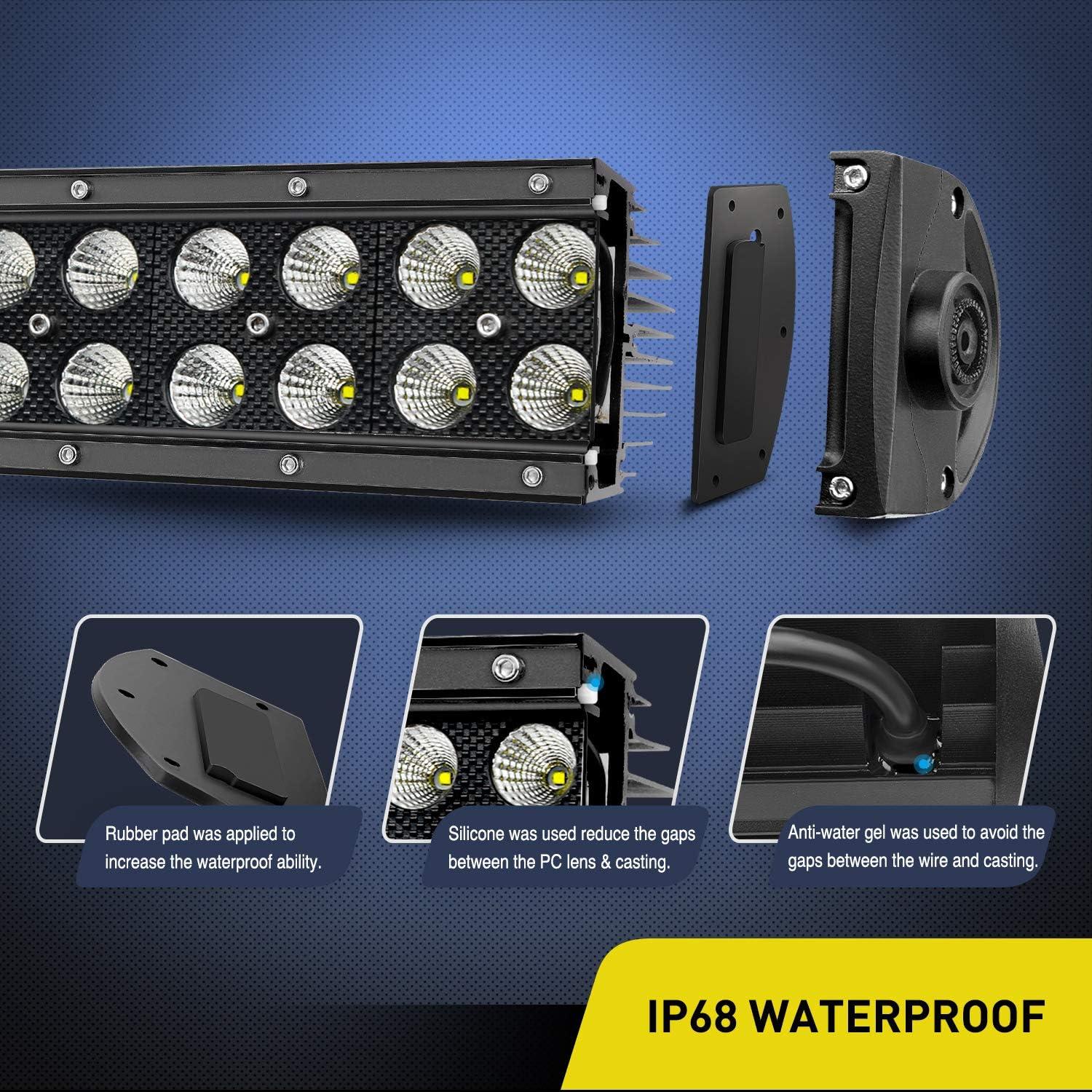 HIGH BRIGHTNESS: Powerful 180w LED Light Bar, spot beam for long irradiation distance, flood beam for bright and broad view area.